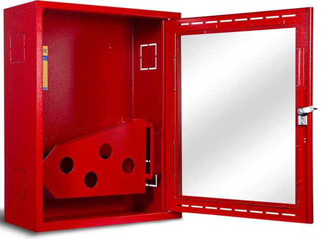Двукратное увеличение площади окна, а также применении «еврозащелки» оригинальной конструкции вместо традиционного почтового замка с ключом. Решение продиктовано, как удобством пользователей, которым визуально будет доступно для просмотра 100% внутреннего объема шкафа, так и нормативным требованием доступности для обеспечения быстрого открывания пожарного шкафа в экстренном случае.