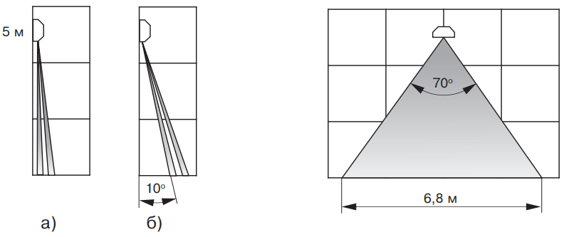 | Угол зоны (Охранные датчики) | 8° линейная |